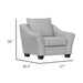 Understated flair and cozy chenille fabric wait for you in the Casey Collection. The classic contemporary frame is updated with flared arms accentuated by welting for a subtle saddle shape. Pillow-shaped back cushions blend the casual appeal of a scatterback with the tidiness of a more traditional box cushion. Upholstered in soft light gray with flecks of dark gray for added depth, the Casey Collection includes a sofa, loveseat, and chair, accompanied by an accent oval ottoman featuring hidden castors. Flip the top from cushioned upholstery to a dark wood tray to discover hidden storage. Complete the look by tossing on the included accent pillows in a blue and gray geometric print and a textured stripe in shades of navy. With Casey, every moment is a home run in comfort.