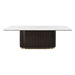 Clayten collection exudes elegance with its rectangular dining table featuring a fixed white marble top and pedestal base with metal trim. Paired with upholstered chairs and a server with metal legs, this set blends sophistication and contemporary style. Perfect for hosting elegant dinners and creating memorable moments, the Clayten collection brings luxury and comfort to your dining space.