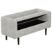 - The Isla storage ottoman blends style with functionality to bring a fresh breeze to your home. With its low back and solid wood legs, this ottoman offers both comfort and durability. The soft chenille fabric, in a light cream color with flecks of gray, creates a serene and inviting look. Hidden bench storage provides a perfect place for blankets, books, or other essentials to keep your space organized and clutter-free. Equally suited to placing at the end of a bed as by an entryway, this storage bench ottoman combines timeless design with everyday elegance.