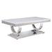Zander - Coffee Table - White Printed Faux Marble Top & Mirrored Silver