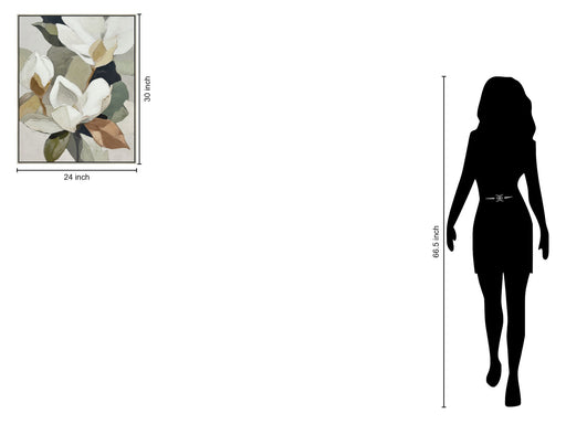 "Whispering Petals I" Framed Canvas Under Acrylic - Beige / Cream / Olive