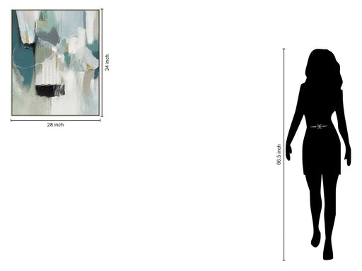 "Oceanic Whispers II" Hand-Embellished Canvas In Frame - Gray / White / Green