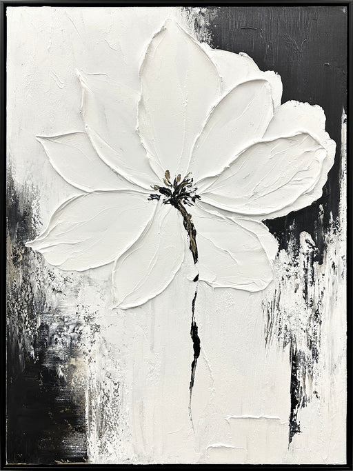 "Ethereal Blossom II" Hand-Painted Canvas In Frame - White / Black