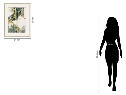 "Golden Strokes II" Hand-Embellished Canvas Framed Under Acrylic - Silver / Green / Gold