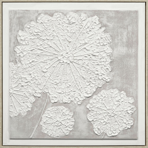 "Textured Elegance II" Hand-Painted Canvas In Frame - White / Gray