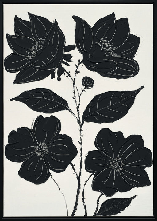 "Nocturnal Blooms II" Hand-Painted Canvas In Frame - Black / White / Canvas