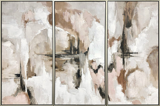 "Ethereal Reflections" Hand-Embellished Canvas Triptych In Frame - Neutral