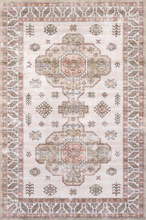 Colbie Tribal Machine Washable Area Rug: Ivory / Rectangle / 5' x 8'