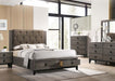 Avantika - Eastern King Bed With Storage - Fabric & Rustic Gray Oak