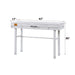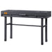 KD, Rectangular Vanity Desk • Storage: 1 Drawer • Feature: Metal Frame, Recessed Panels (Cargo Container Panels) •• CONSTRUCTION •• Metal Top: Iron Plate (40 x 40mm), Drawer w/Wood • Metal Straight Legs • Drawer: GLIDE Side Metal (Ball Bearing, 3/4 Ext.), DOVETAIL NOT Included, Fully Finished Inside (FELT-LINED NOT Included), SAFETY STOP Included, Manual Close, Hardware: Single Handle, Finish Material