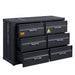 Bold industrial accents exude a funky New York loft vibe that makes an immediate impact to your space. The Cargo Dresser embodies true industrial design with warehouse style. It features a unique shipping container appearance, with gunmetal finish enhancing all design elements. Six storage drawers offer ample space to store your clothing, bedding, or personal stuff. Combining industrial chic with a utilitarian design, the Cargo Dresser adds a lot of energy and character to your room decor.