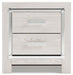 The epitome of fashion-forward design, this nightstand is a beautiful blend of comfort and luxury. Shiny chrome-tone accents, a pearlized finish and mosaic pulls bring a glam touch to the richly rustic appearance. With wireless and plug-in charging options, this bedside table adds style and modern conveniences to your restful retreat.