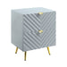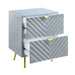 The Gaines Collection is a glamorous and sophisticated grouping that adds a chic style to any room. The white gloss finish and gold metal accents help to accentuate the clean lines of the pieces and add a pop of glamour. The diagonal line design adds visual interest and texture, making each piece stylish. With a variety of storage options to meet your needs.