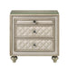 - Tufted Drawers: The front of the two drawers features a tufted design with diamond-shaped patterns, adding a textural element.