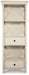 Need a stylish space to showcase dinnerware, pictures, decorations and more? This tall three-shelf display cabinet is a dream come true. The textured antiqued white finish provides a perfect backdrop for presentation. For the items you want to hide, there are two deep drawers. Embellished with the casual appeal of lattice sides, attractive crown moulding, clean lines and lightly distressed finish, this cottage-style shelf provides ample storage in such an artful way.