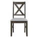 This Marit dining set features a stylish gray finish and an eye-catching "X" shape leg design, offering both elegance and stability. The accompanying chairs and bench come with padded seat cushions, providing comfort for extended gatherings. Perfect for modern and rustic interiors alike, this dining set combines functionality with contemporary charm, making it an inviting centerpiece for family meals and entertaining guests. Enhance your dining space with this beautiful and practical set.
