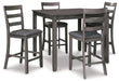 - Includes counter height table and 4 barstools