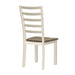 Medium brown acacia veneers top creamy white hardwood solids to give the Wichita farmhouse appeal. The classic design of the ladderback chair is modernized with five narrow back slats. Together with the sharply tapered angle at the base of the table and bench’s sturdy block legs, farmhouse moves into transitional design for a fresh look. This two-tone dining set includes the table, bench and four chairs. Bundling casual dining into the complete package, the six-piece Wichita dining set will remind you that there’s no place like home.
