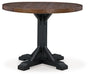 This set serves up the best in cottage styling. A charming choice, its two-tone finish is versatile enough for many casual aesthetics. Round counter height table features a sturdy post and bracket base design in a rustic finish with a thick round top. Counter stool features a distressed frame made with hardwood solids and a rustic brown solid pine seat that is contoured for comfort.