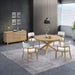Experience the fusion of simplicity and warmth with our beautifully crafted dining table set. Inspired by Scandinavian design, this ensemble invites you to enjoy every meal with grace and comfort. The natural wood finish of the round table and matching chairs brings an element of organic beauty to your dining space, creating a serene setting for intimate dinners and meaningful conversations. The plush, white upholstered seats promise a welcoming softness, perfect for long gatherings under the soft glow of your dining room light. This set isn't just about meals; it's about moments—crafted to foster connections and build memories in the heart of your home.