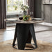 - Round Dining Table, Fixed Table Top, Cone Style Base, Upholstered Chair, Low Armrest