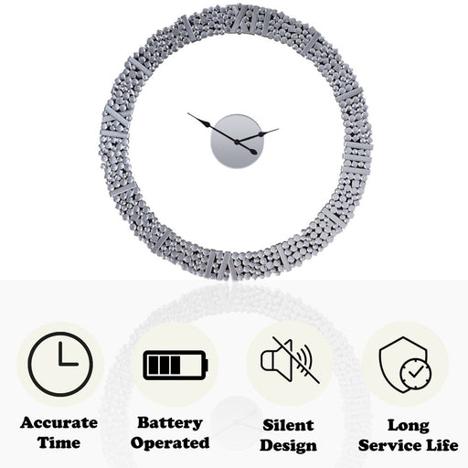 Noralie - 39" Wall Clock - Mirrored & Faux Diamonds