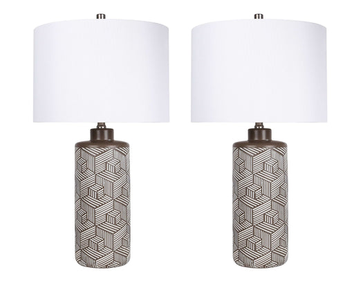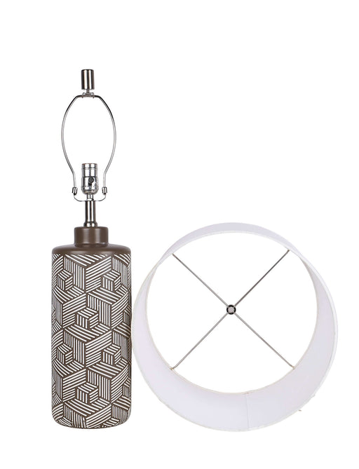 "Geometric Harmony" Ceramic Table Lamp (Set of 2) - Brown / White