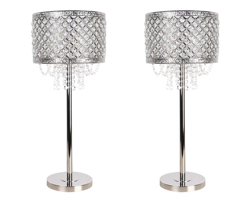 "Crystal Elegance II" Metal Table Lamp (Set of 2) - Polished Nickel / Clear Crystal