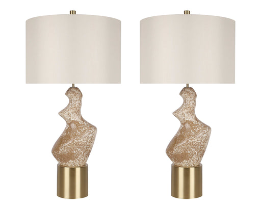 "Sculptural Serenity" Ceramic Table Lamp (Set of 2) - Stone / Soft Gold