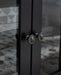 Raise the bar on modern farmhouse style with this TV stand with electric fireplace. Its sturdy silhouette and casual good looks are accentuated with a two-tone finish, which pairs a warm satin black base with a contrasting butcher block veneer top. Glass door cabinets with adjustable shelves offer plenty of storage for media and electronics. Adding that much more show-stopping style, the electric fireplace insert operates with or without heat and includes a six-level temperature setting, a remote control and an overheating control for added safety. It comes with faux glass crystals and natural stones, so you can customize the look of the flame bed.