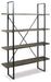 Got books? Bring them to this bookcase. Its industrial mix of dark wood and black metal brings trendsetting vibes to your home. Four sturdy shelves hold your belongings with ease. Mix in some metallic decor for a home office look you can’t refuse.