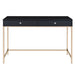 Motivation starts with a great office or study space. Enjoy the contemporary design of this Ottey office desk while getting all of your work done in style. Featuring white high gloss finish with a gold metal base, this practical yet fashionable desk offers ample surface room and 2 storage drawers for your office supplies or other accessories. Perfect for any office space in your home, this piece will offer you an excellent space to organize all of your work and study needs.