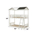 Give your children a space of their own with the Nadine cottage bunkbed. This unique wood twin over twin bunk bed features easy-access guardrails, a reversible front ladder and a decorative cottage themed roof over the top bunk. With a timeless weathered white and washed gray finish, this artistically imagined bed is expertly designed to withstand the test of time and provide your little ones with enduring comfort and adventure.