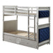 Add some smart ideas and bright accents to your child’s bedroom with the Powell Trundle. In a glimmering silver finish and wooden carving details on the frame of trundle create a brilliant look into any bedroom. The function and design of this bed are elevated; it can be placed underneath a daybed and roll out it when required. The trundle includes slats offering a support foundation for your mattress.