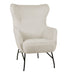When looking for comfort and sophistication in your den or study, the Franky accent chair fits the bill. A soft and cozy cream boucle with piped edges and stitching detail sits atop black metal legs creating a contemporary look that is rich and inviting.