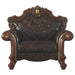KD Back, w/1 Pillow • Tight Back & Loose Seat Cushion (1+2) • Diamond Tufted, Nail-head Trim, Oversized Crown & Raised Scrolled Trim: Antique Pearl w/Gold Brush (Backrest, Front Armrest & Base) •• Construction] Pocket Coil Seat; Inner Frame: Wood (Solid Wood+Ply); Foam (), Moldings: Poly-Resin, Box Seat Cushion w/Welt Trim (Not Reversible), Padded Scrolled Base • BACKREST: Arched (Center Diamond Tufted) • ARMREST: Rolled Styled w/Scrolled Front • Oversized Queen Anne Leg: Poly-Resin Moldings ••• Material: PU () •• Pillows: Assorted Shapes & Patterns (Removable Covers)