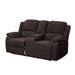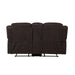 Upholstered in velvety brown chenille, the Madden motion loveseat is not only supremely comfortable, but also durable. This is great news because once you sink into one of these pillowy seats, you won't want to get up! The tight back and seat cushions and pillow-top armrests are excellent for relaxing, while the lift-top storage and cup holders built into the loveseat keeps your favorite beverage at hand. The reclining mechanism is right within hand's reach with the external pull-handle latches. Bring home the unbeatable combo of comfort and convenience with Kalen!