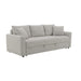 The Haran collection sofa in gray boucle fabric is a blend of elegance and functionality. Featuring a wooden inner frame, it effortlessly transforms into a full-size pull-out sleeper.The removable cushion and back cover, along with included accent pillows, add to its comfort and style, making it a perfect addition to any living space.