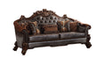 Vendome II - Sofa With 5 Pillows - Two Tone Dark Brown Synthetic Leather & Cherry