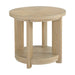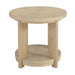 - The Pacific Grove round accent table brings the outside in with its light and airy, casual style. You'll find the perfect blend of modern, rustic, and coastal design aesthetics with rounded shapes and neutral tones. Solid hardwood construction ensures longevity to each piece in the collection. The multi-step warm sandy finish, featuring rasping and sand-through techniques, is complemented by light wire-brushing and white glazing to enhance the natural grain of oak veneers and highlight the beautiful quarter-turned pattern.