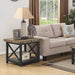 Cozy up to a good book with lighting placed right where you need it using the Carpenter lamp table. The perfect companion to an armchair or sofa, this rustic meets industrial table includes an open fixed shelf below provides an additional area to stack books or display décor. Inspired by the look of vintage workbenches, this lamp table features distressed acacia wood planks for a reclaimed look, hand-worked metal frames and exposed bolt heads.