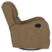 - The Henry swivel glider recliner brings together graceful curves and everyday comfort with a gently sweeping arm and tailored upholstery that highlight its sculpted silhouette. Available in light brown PU or speckled brown woven fabric, this swivel glider recliner features a sinuous spring seat topped with an individually pocketed coil cushion for supportive, resilient comfort. A padded back and smooth gliding base offer gentle motion, while a sleek black metal lever provides easy access to the manual reclining feature, making it a versatile choice for nurseries, reading corners, or cozy living spaces..