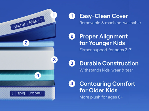 NectarOriginal price $629.00Original price $629.00 - Original price $629.00Original price $629.00Current price $499.00$499.00 - $499.00Current price $499.00The Nectar Kids 8” Memory Foam Mattress adapts to your child’s growing needs with its flippable design. The easy-clean cover is removable, machine-...