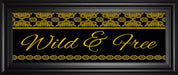 Embrace the essence of fearless individuality with this captivating "Wild & Free" framed wall art. Featuring elegant gold script on a deep black background, it is bordered by intricate golden patterns that radiate sophistication and warmth. Housed in a sleek black MDF frame with crystal-clear glass, this piece effortlessly blends contemporary style with timeless elegance. Perfect for your living room or office, it serves as a daily reminder to live boldly and authentically. Ready to hang and crafted with care, this artwork transforms any space into a sanctuary of inspiration and refined beauty.