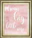 Celebrate the inspiring journey of childhood with this charming framed print that reads “Dream Big Little One.” The soft pink watercolor backdrop creates a gentle, soothing atmosphere, while the elegant white and gold lettering adds a touch of warmth and sophistication. Perfect for nurseries or kids’ rooms, this piece encourages imagination and hope, making it a heartfelt addition to any space. The wide gold frame enhances the artwork’s depth and richness, and the real glass front ensures vibrant colors remain protected and clear. Expertly crafted and ready to hang, this print brings a timeless message of encouragement and love to your child’s environment.