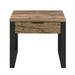 Rough industrial materials are mixed together to make an instant impact to your space. The table base is made from black-finished metal in an openwork silhouette for a bold look, while a wooden table top in a weathered oak lends a bit of natural charm that soften the whole metal base. There are a storage drawer and compartment for odds and ends. Add this brilliant addition to show your confidence and make a statement in living space.