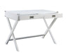 Applied to nearly any office, the Amenia Desk will brighten up your workplace with shiny simplicity and handsome finish. The crossing X base gives this table sturdy support while showcases the openness of the design. The desk has a spacious rectangular top with two storage drawers, optimizing your inspire space. Furthermore, metal corner brackets and drawer handles add a lovely touch of shine to the piece. The Amenia Desk helps you get ready to begin your workday.
