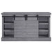 - Storage: 2 Sliding Barn Doors, Open Media Compartment