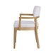 - Light Color Scheme: The light-colored wood and white upholstery create a neutral color scheme, making the chair versatile for various room styles.