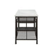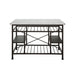 The Lanzo Kitchen Island is equally ideal for counter space or an excellent choice for display with extra storage. Blending contemporary style with industrial charm, the design is both stylish and functional. The metal frame adds a touch of industrial impression to the modern marble top style. Featuring four open shelves this is a must-have for every home.